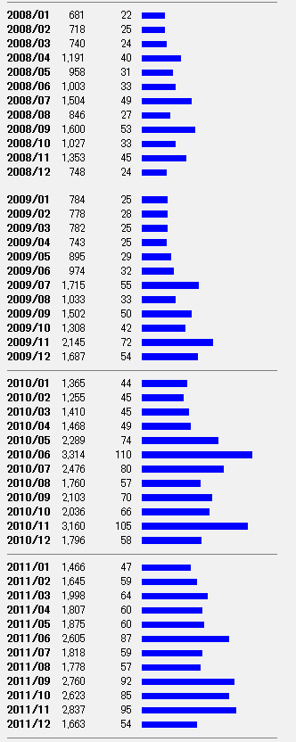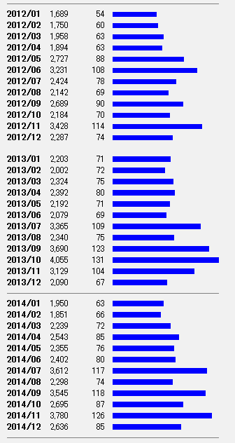 | ■ 2004年のホームページ開設時からのアクセスカウンターの推移です。 インターネットの普及もありの訪問者が増えている様子がわかります。 県大会の前後月でアクセスが多くなっています。 ![]() ![]() ![]() ・2015年11月はホワイトリングで「第17回関東甲信越ブロック選手権」と松本市で「第41回長野県ダンススポーツ大会」が行われ、 月間アクセス数が過去最多となりました。 ・2017年7月はホワイトリングで「全日本選手権シニアV」と「関東甲信越ブロック選手権シニアW」が行われ、アクセスが多くなりました。 ・2020年はコロナ禍のため県大会が開催出来ず、ホームページのアクセスもピークが有りません。 ・2021年は10月に県大会が行われ、アクセスのピークが現れています。 ■2015年4月のアクセスカウンターの推移です。 週末のアクセスが少なく、月曜日の訪問が多くなっています。 ![]() ■2017年7月の日ごとのアクセス推移です。 7月15-16日にホワイトリングで「全日本選手権シニアV」と「関東甲信越ブロック選手権シニアW」が行われ、 大会前は「タイムテーブル」と「エントリーリスト」の掲載に合わせてアクセスが増えています。 大会翌日は「競技結果」の掲載に合わせてアクセスが急増し、過去最高の日次アクセスを記録しました。 ![]() |