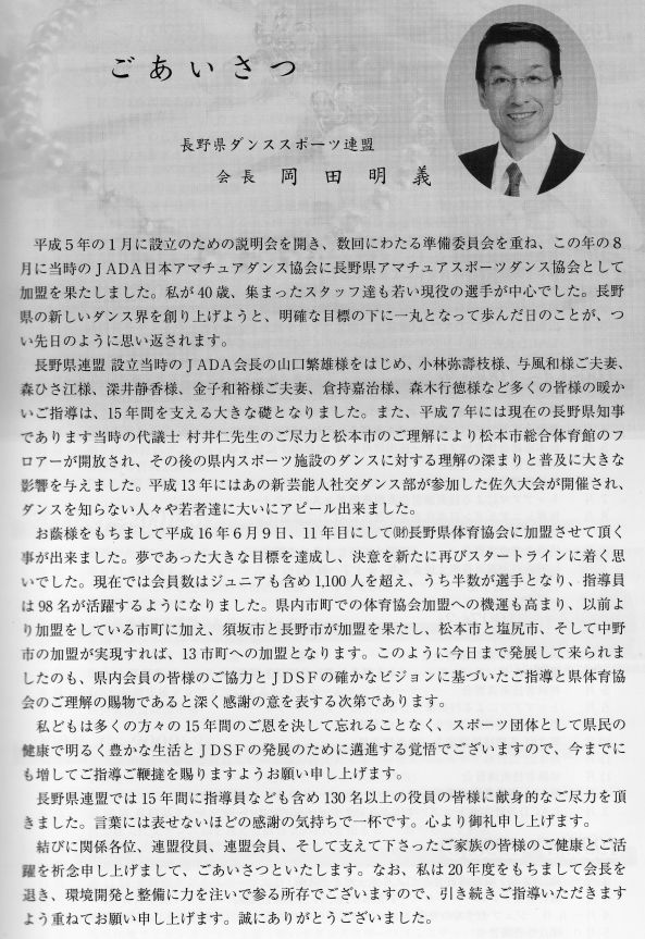 発行者:長野県ダンススポーツ連盟 会長 岡田明義