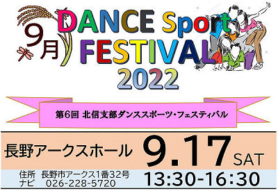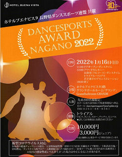 | (終了)DANCESPORT AWARD NAGANO 2022 日時:2022年1月16日(日)11:00〜18:00 会場:ホテルブエナビスタ3階 グランドボールルーム「グランデ」 新型コロナウイルス対応: ・参加者の健康チェックシート提出(名簿管理) ・入室時体温管理(据え置き型設置) ・常時マスク着用(不織布タイプ推奨) ・手指消毒実施 ・ホテル室内常時換気あり ・ダンスタイム時フロアー人数制限し、ゆったり踊ります ・食事テーブルは隣席との衝立あり、飲物のお酌禁止 詳細案内 参加申込書 健康チェックシート タイムテーブル ポスター(PDF)共催: 長野県ダンススポーツ連盟、ホテルブエナビスタ (終了)オレクシーグザー&太田吏圭子組のスペシャルレッスン 目的: WDSFのテクニックと音楽表現を学ぶ 日時: 2022年3月19日(土) 10時〜16時半 場所: 須坂市市民体育館 須坂市日滝1 講師: オレクシーグザー&太田吏圭子 詳細はチラシ(PDF)をご覧ください。 主催: 長野県ダンススポーツ連盟 北信支部 共催: 長野県ダンススポーツ連盟 強化部 (終了)第51回長野県ダンススポーツ大会 併催 ねんりんピックかながわ2022代表選考会 (JDSF公認 No.220518) 日時: 2022年5月22日(日) 選手入館可能時間 8:30〜 競技予定 10:00〜17:00 (練習時間なし) 会場: ユメックスアリーナ(塩尻市総合体育館) (塩尻市広丘郷原1657-2) 会場アクセス図 ユメックスアリーナ敷地全体見取り図 シラバス(PDF) エンリーリスト タイムテーブル 「出場される選手の皆様へのお知らせ」 イベント開催時のチェックリスト 「イベント名:第51回長野県ダンススポーツ大会」 (PDF) 競技結果(本部版) 会場で行いましたウクライナ支援の募金活動には¥32,840が集まりましたのでご報告致します。 こちらのお金はJDSF本部を通じてウクライナダンススポーツ連盟に送られます。ありがとうございました。 (5/26 事務局) 主催: 長野県ダンススポーツ連盟 後援: 公益社団法人日本ダンススポーツ連盟 (終了) 2022年度 JDSF公認長野県指導員「特例措置」研修会 (A級公認技術認定員資格更新研修会併催) 第1回 2022年6月12日(日) 松本市浅間温泉文化センター 第2回 2022年8月7日(日) 長野市 芸術館 詳細シラバスをご覧ください。 「ジュニア育成部・選手強化部合同レベルアップ講習会」 (終了) 7月2日(土) ジュニア講習会・山本武志・木嶋友美レッスン会 詳細案内 健康チェックシート (PDF) 9:30受付開始 10:00〜12:30 団体レッスン 13時〜 個人レッスン 会場:塩尻市 吉田地区センター (塩尻市広丘吉田2901-3) 17:00以降は塩尻市、広丘堅石区民センター 講師:JDSF-PD 山本武志・木嶋友美 組 主催:長野県ダンススポーツ連盟 ジュニア育成部 --------------------------------------------------------------------- (中止) 7月3日(日) 選手強化部講習会 詳細案内 健康チェックシート (PDF) 10:00〜12:15 グループレッスン 13:00〜20:20 個人レッスン 会場:塩尻市 吉田地区センター (塩尻市広丘吉田2901-3) 講師:JDSF-PD 山本武志・木嶋友美 組 主催:長野県ダンススポーツ連盟 選手強化部 (終了)VIVA!FESTA!2022 in MATSUMOTO 日時:2022年8月11日(木・祝日) 11:00ドアオープン〜18:00終了 会場:ホテルブエナビスタ3階 グランドボールルーム「グランデ」 人数:先着200名様限定 募集:トライアル フライヤー詳細案内 (PDF) 参加申込書 (エクセル) ![]() 共催:ダンスキッズレザンまつもと&ホテルブエナビスタ (ご連絡) コロナの急激な蔓延に伴い、9月11日の開催は一旦中止となりました。 今後につきましては期間を空けてコロナの発生動向を加味しながら 延期も視野に入れ再度会議を開き予定を検討するとの事です。(8/4up) (一旦中止)全日本選手権 車いすダンススポーツLIONS CUP 第10回記念大会 日時: 会場:塩尻市総合体育館(ユメックスアリーナ)【空調設備あり】 身障者用及び一般用大駐車場完備 ナビ用電話番号/0263-52-3800 入場観戦:無 料 見学観戦自由。ソーシャルディスタンスを考慮して席に付いて下さい(観戦は観覧席のみ)。 申込期間:令和4年7月11日(月)から8月10日(水)到着分まで。 綱・シラバス エントリーシート(7/15差替え) 健康チェックシート PDF ![]() 主催:塩尻桔梗ライオンズクラブ 協力:長野県車いすダンス ハンドトゥハンド、公益社団法人JDSF長野県ダンススポーツ連盟中信支部 (終了) JDSF公認・第35回 長野県技術認定会 ハイグレード&G コース 【公認番号220903G/HG】 日時: 2022年9月4日(日) 受付13:40〜13:50 技術認定会 14:00〜17:00 会場: 長野県塩尻市広丘堅石区民センター 住所 長野県塩尻市広丘堅石599−2 〔交通手段 (電車)篠ノ井線 広丘駅下車 車で3分 徒歩10分 〕 ナビ用0263−52−6101 入場料: 無料、見学不可(新型コロナウイルス感染症対策の為、お断りします) 申込締切: 2022年8月18日(木) 詳細シラバス、申込書 (PDF) 健康チェックシート (Word) (PDF) 主催: 長野県ダンススポーツ連盟〔G2以上の主催は公益社団法人日本ダンススポーツ連盟 (終了)県連選手 ・ねんりんピック代表選手 団体練習会 日時: 2022年9月11日(日) 会場: ユメックスアリーナ「サブアリーナ」 塩尻市広丘郷原1657-2 (ナビ電話0263-52-2800) ◆13:00〜15:00 団体講習 ・「ジャッジの目から」 30分 ・コンペスタ
