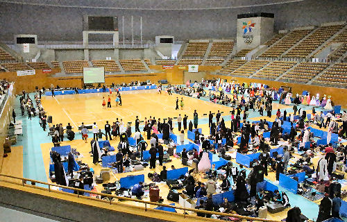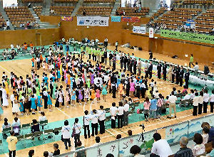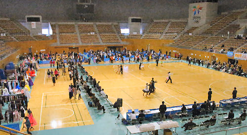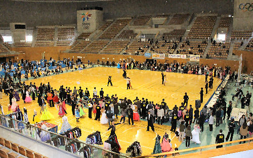 オール・ジャパン・ジュニア (2010/7/18) ホワイトリング外観 開会式 ダンス用品店 ブース 表彰式の様子. 関東甲信越ブロック選手権大会 (2015/11/1) 開会式. 出店ブース. 電光掲示板 |