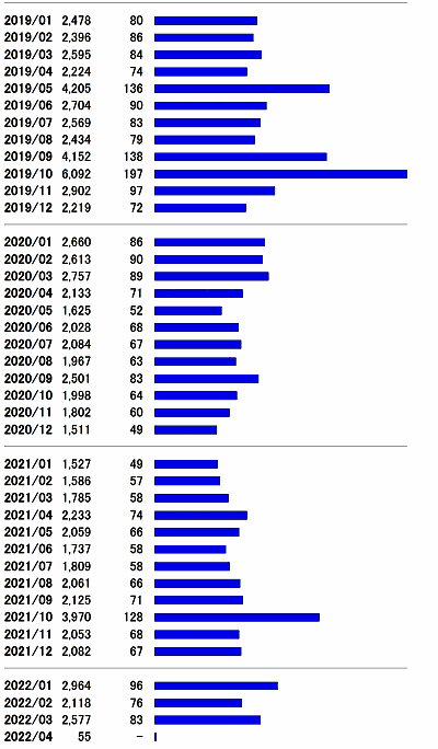 | TOPページ > ホームページ管理部 > アクセス数の推移 (2022/4/1 update) | |