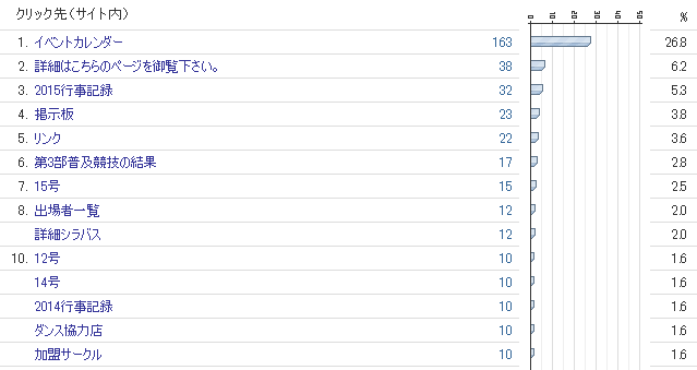 | ■アクセス解析について 2004年6月にホームページを開設してから アクセスカウンターにより訪問者の推移のみ確認していました。 2015年1月にホームページをリニューアルした時に、当ホームページを御利用の皆さんの利用傾向を より細かく把握する為にアクセス解析を導入しました。 現在"QLOOKアクセス解析"を利用して、月日時間による訪問者の推移や、どのメニューの閲覧が多いか、などの情報を ホームページ運営の参考にさせていただいています。 アクセス解析は個人を特定できるものではありません。 また解析データーは管理人以外、外部からは見ることができませんので御安心ください。 下記の様なデーターが得られています。参考に載せておきます。 【人気メニュー】 ※トップページから移動した場合のクリック先です。トップページで用事が済んでいる場合も多いと思います。 直近一週間(2015/4/24〜4/30)の訪問傾向です。 やはりパーティ情報を見に来る方が多いです。 ![]() 【地域別アクセス傾向】 ※ホスト名から推測したビジターの都道府県の数と割合です。あくまでも推測ですので参考値です。 直近一週間(2015/4/24〜4/30) 3/4が長野県内からのアクセスです。 |